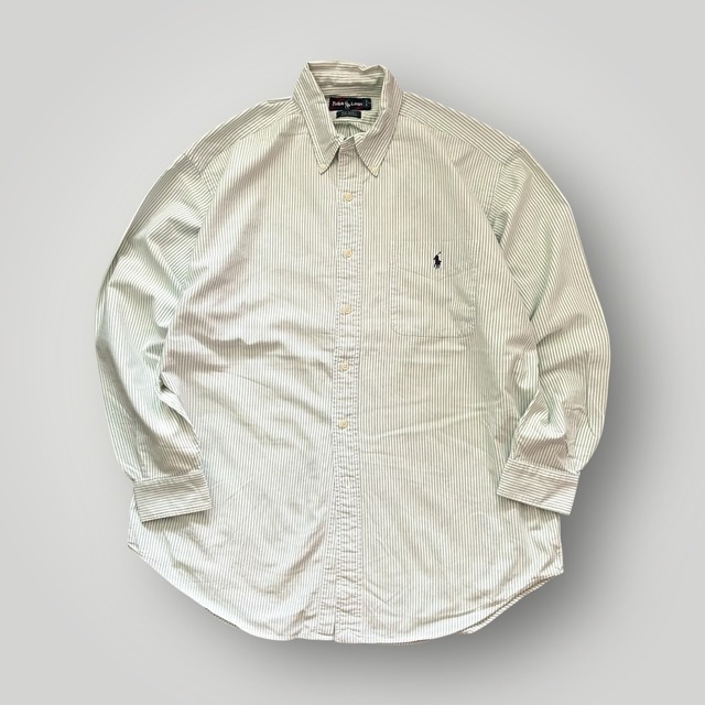 90s RalphLauren Oxford BD. Shirt "BIG SHRT" WHT/GRN M