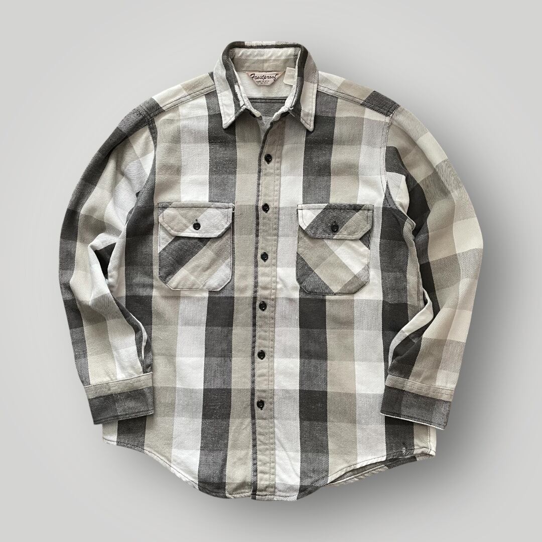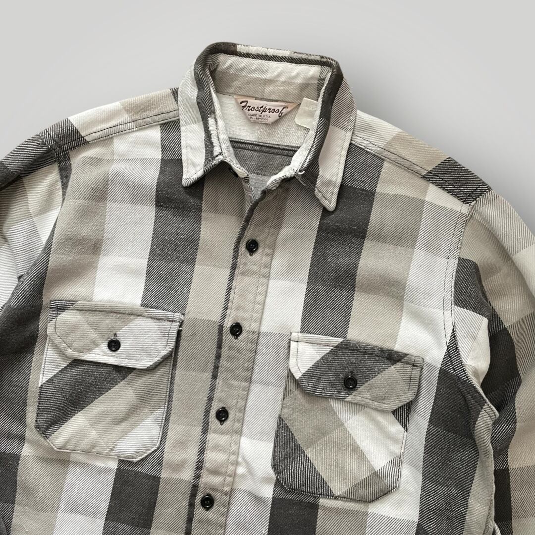 USA製 80s FROSTPROOF Heavy Flannel Shirt BLK/GRY/WHT M