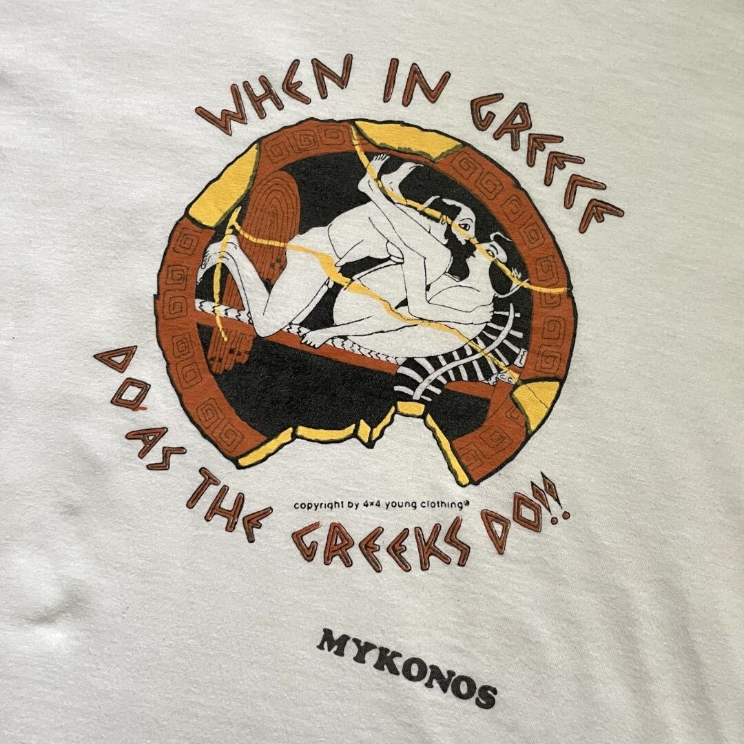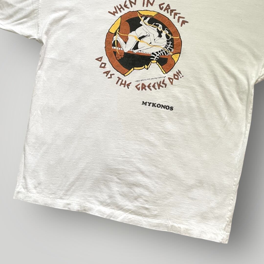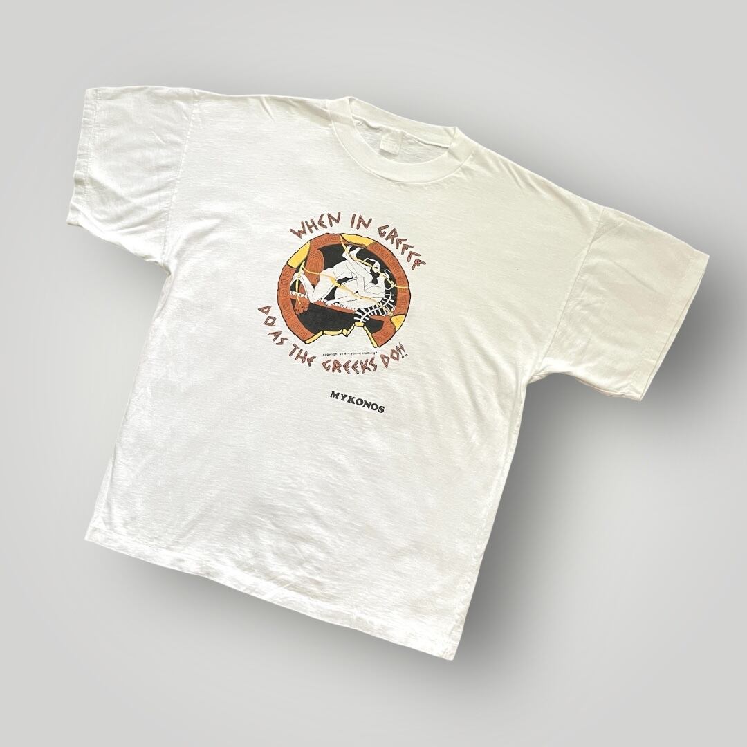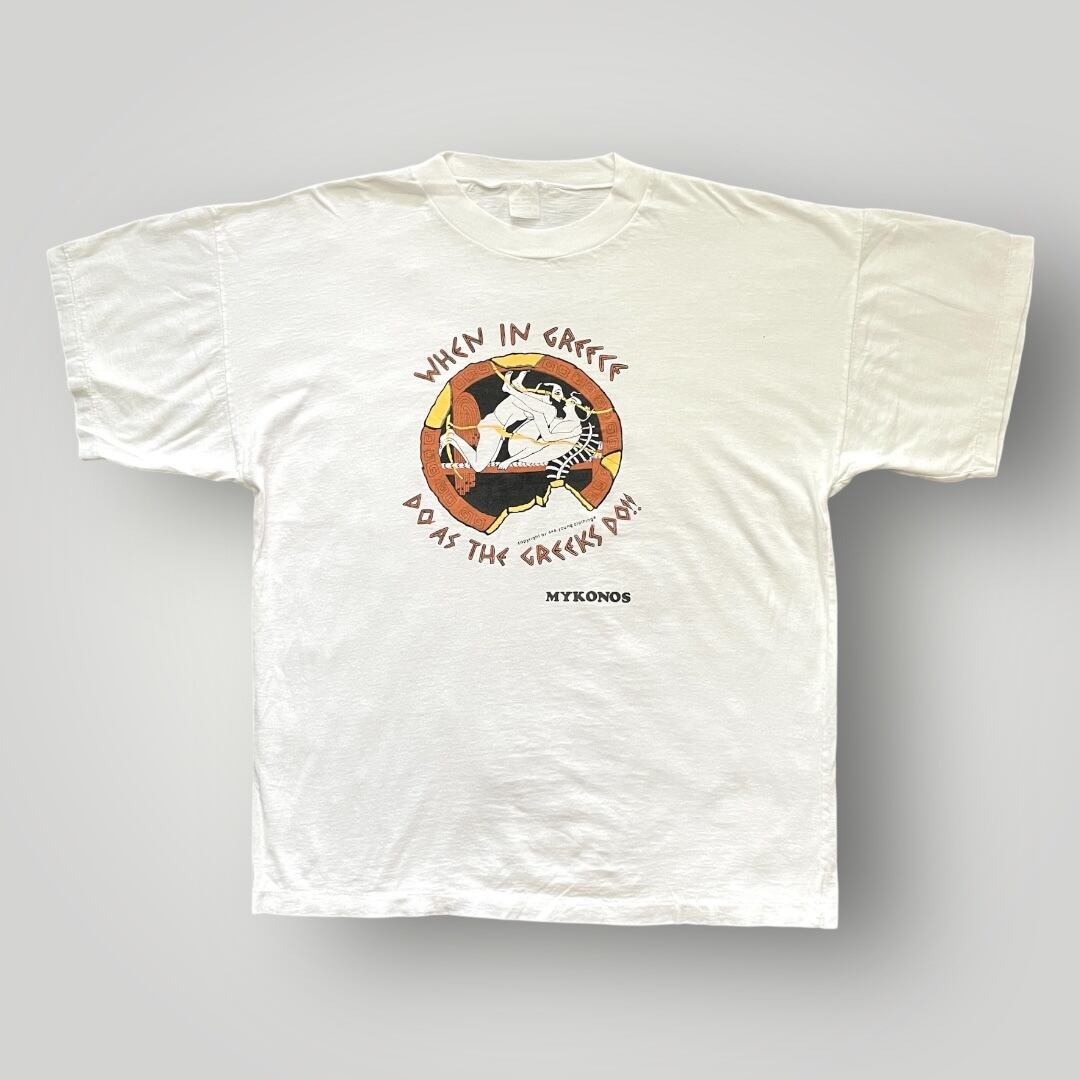 80s~90s Unknown "When in Greece Do As The Greeks Do!!!" Print Tee WHT
