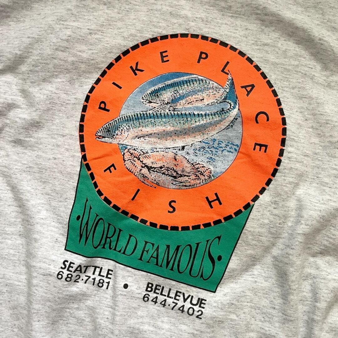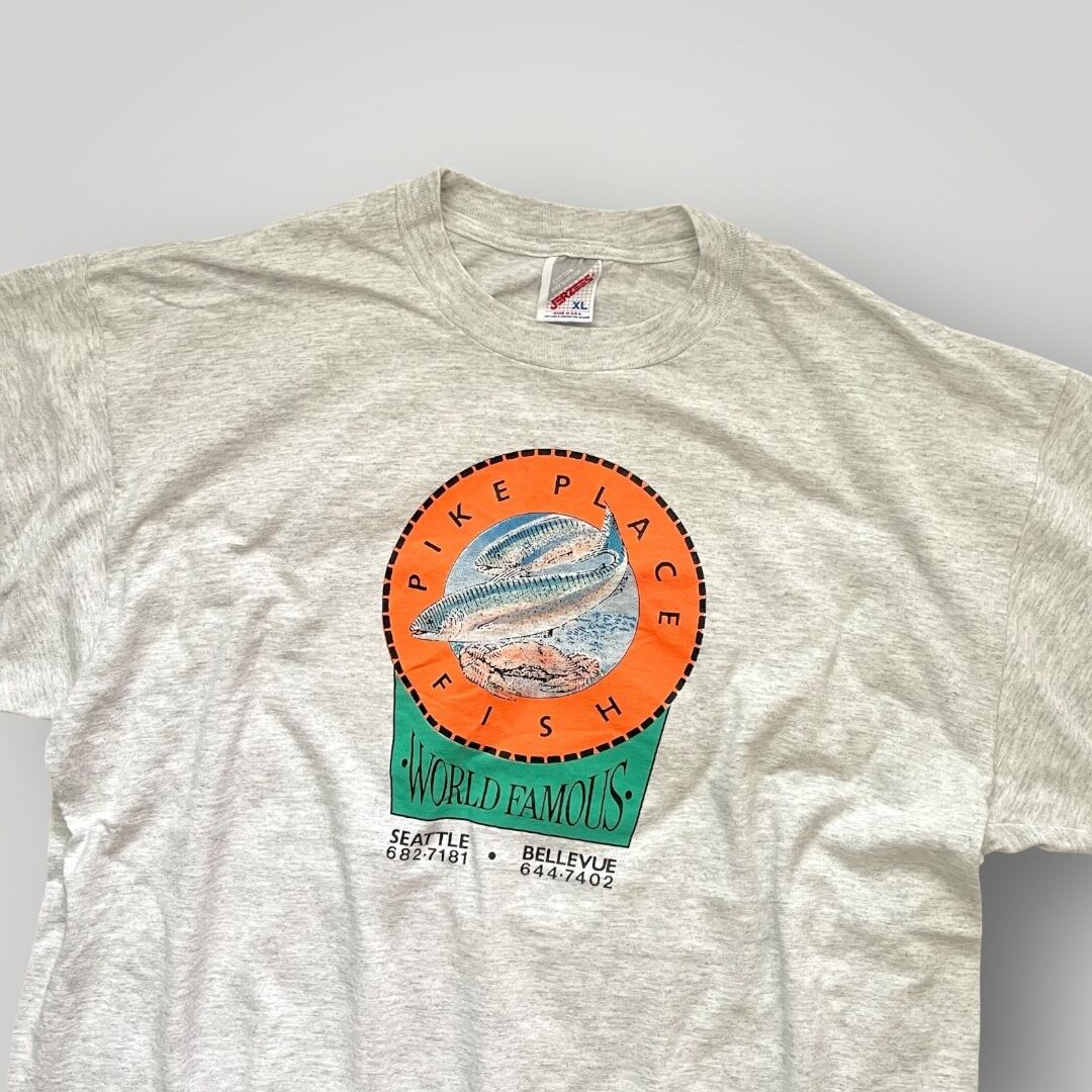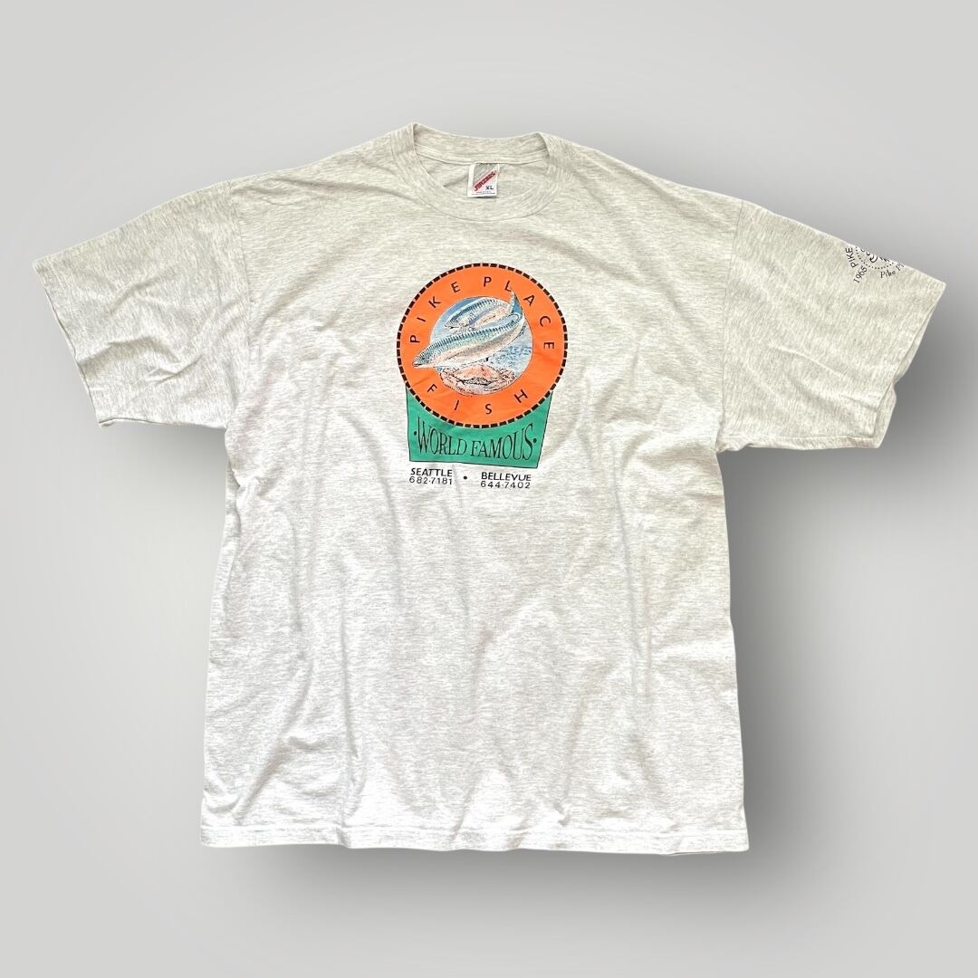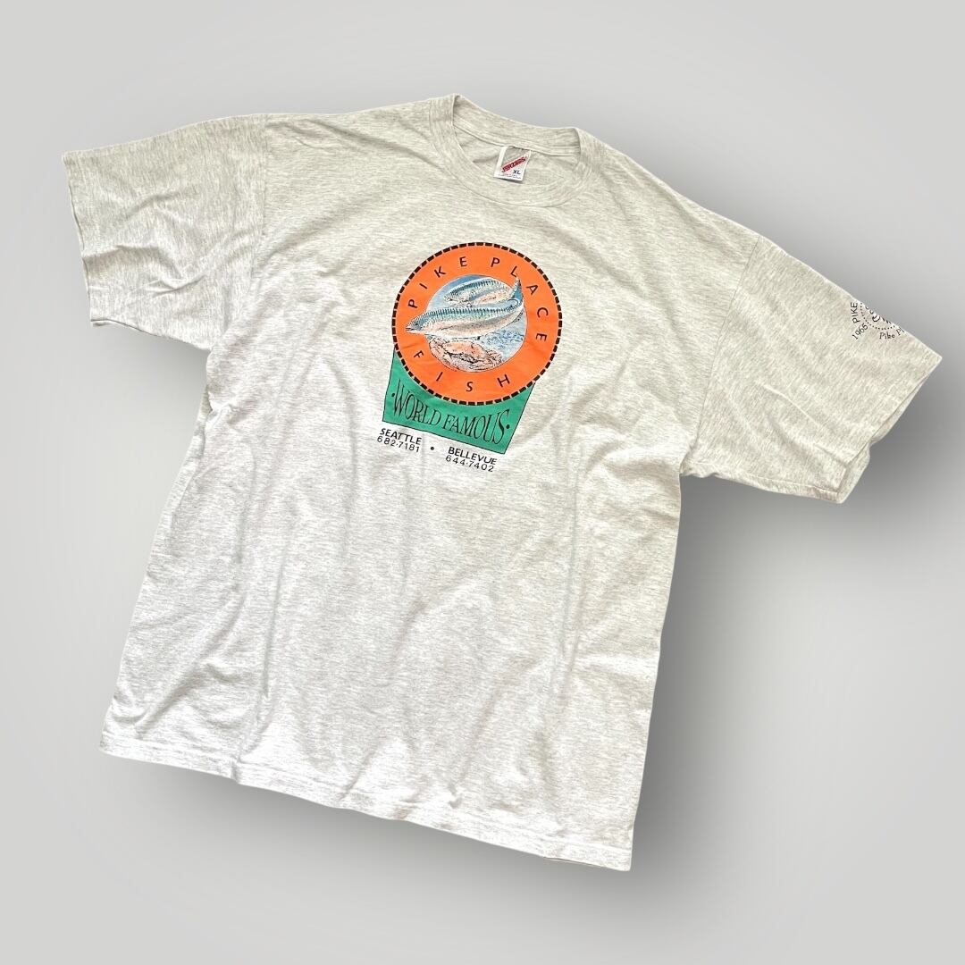 USA製 90s JERZEES "PIKE PLACE FISH 30years" Print T-Shirt GRY XL