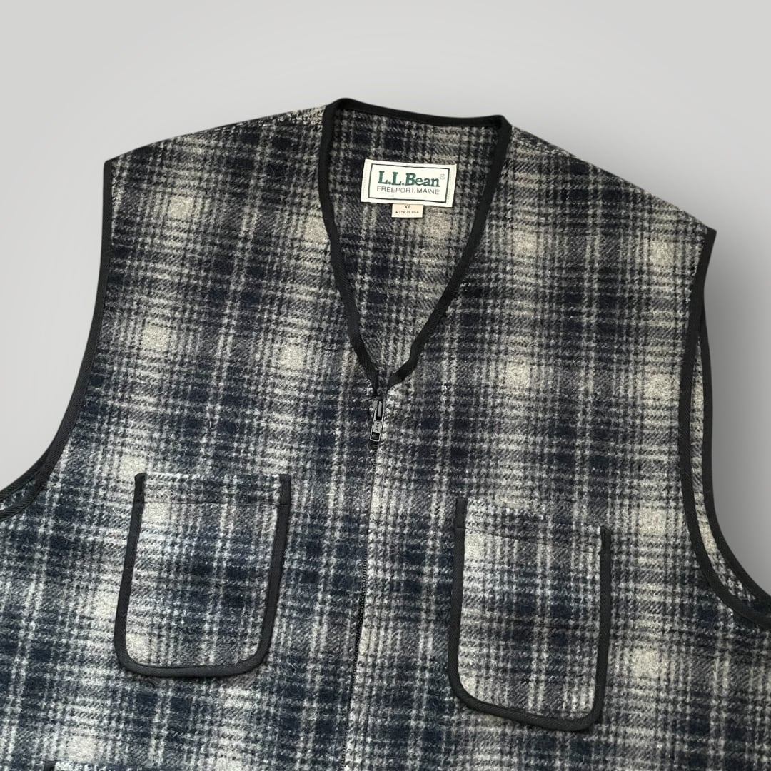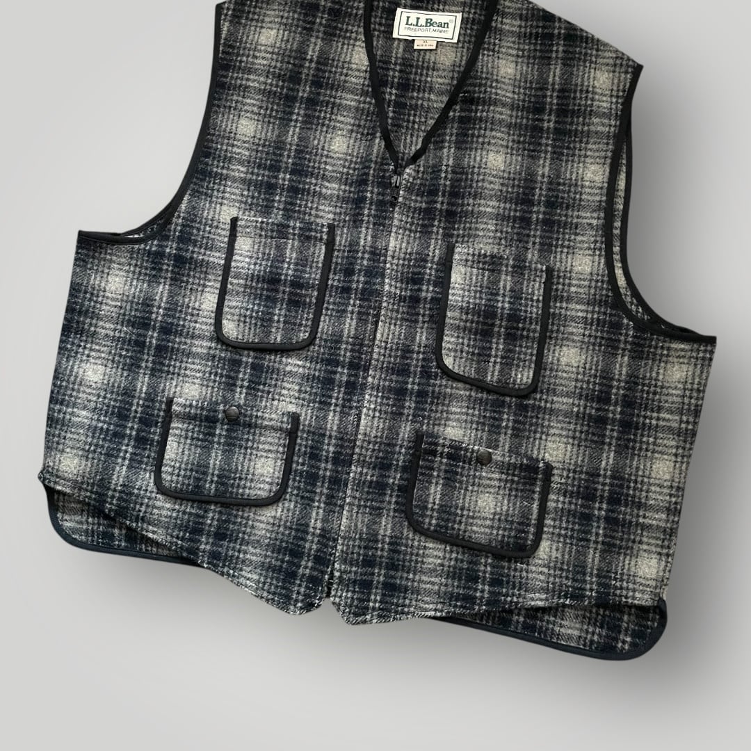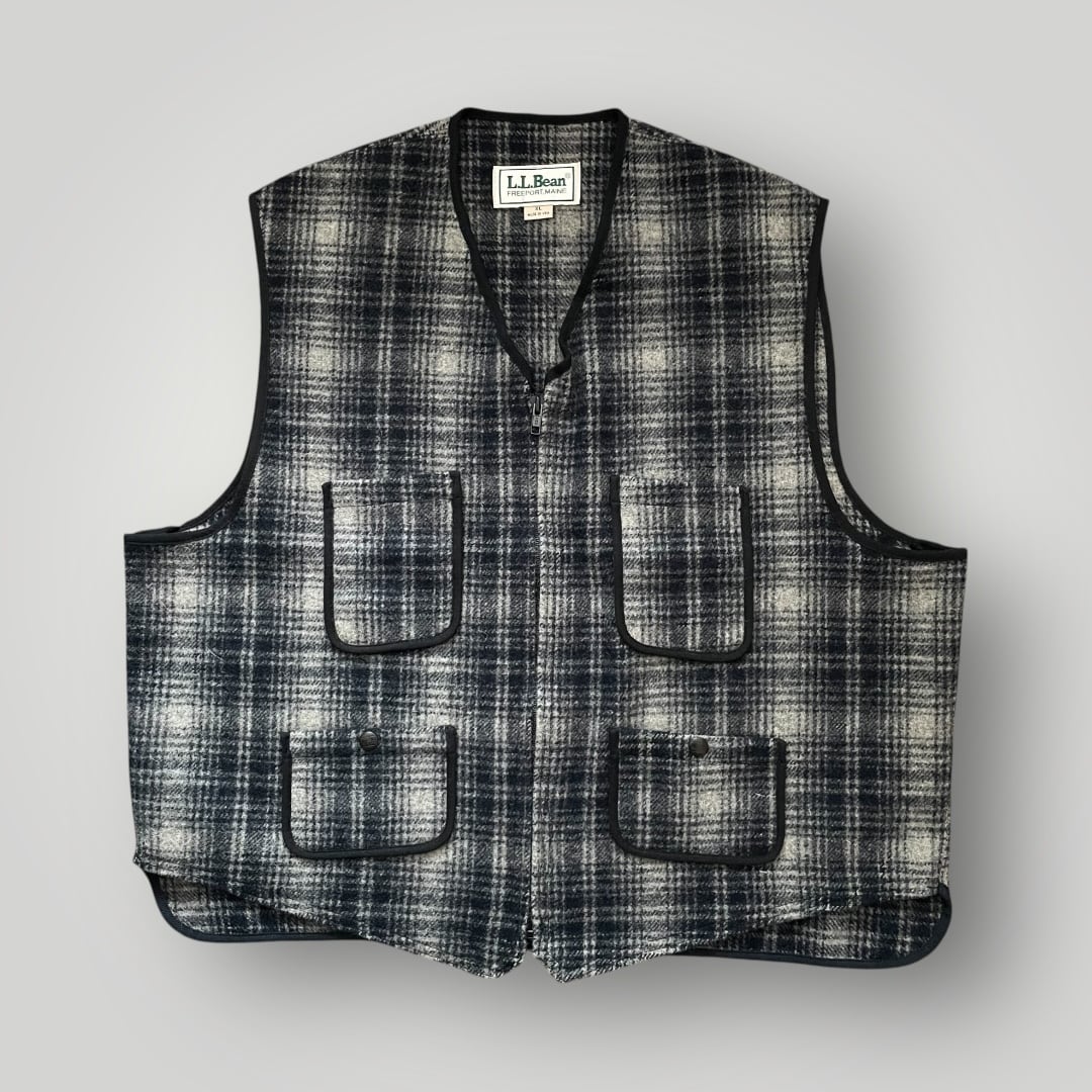 USA製 80s LL.Bean OmbreCheck Wool Vest BLK/GRAY XL