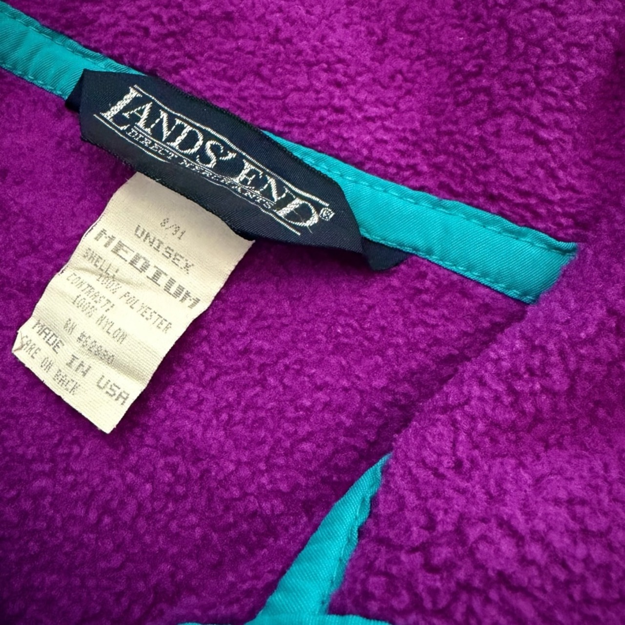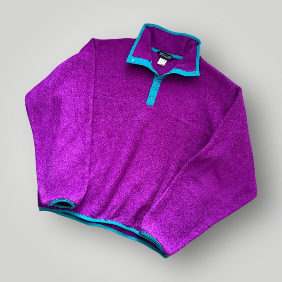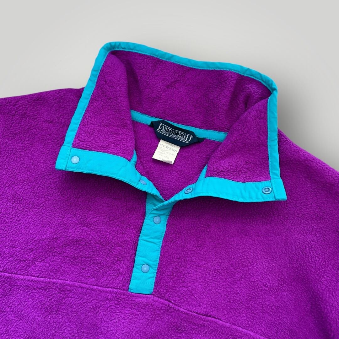 USA製 90s LANDS'END HalfButton Fleece Jacket PUP/SKY M