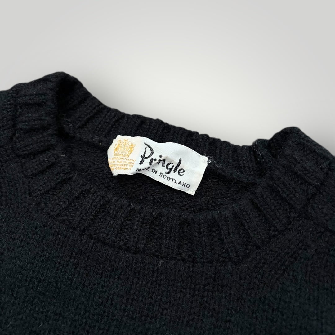 70s~80s Pringle of Scotland Wool CrewNeck Sweater BLK 42