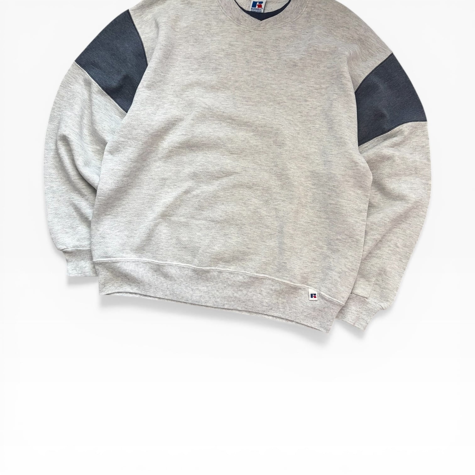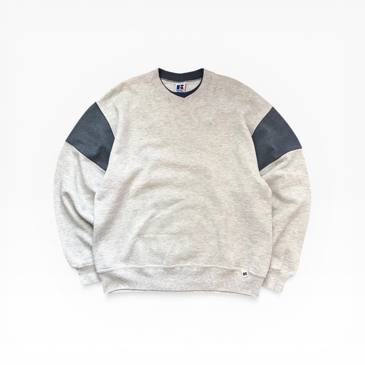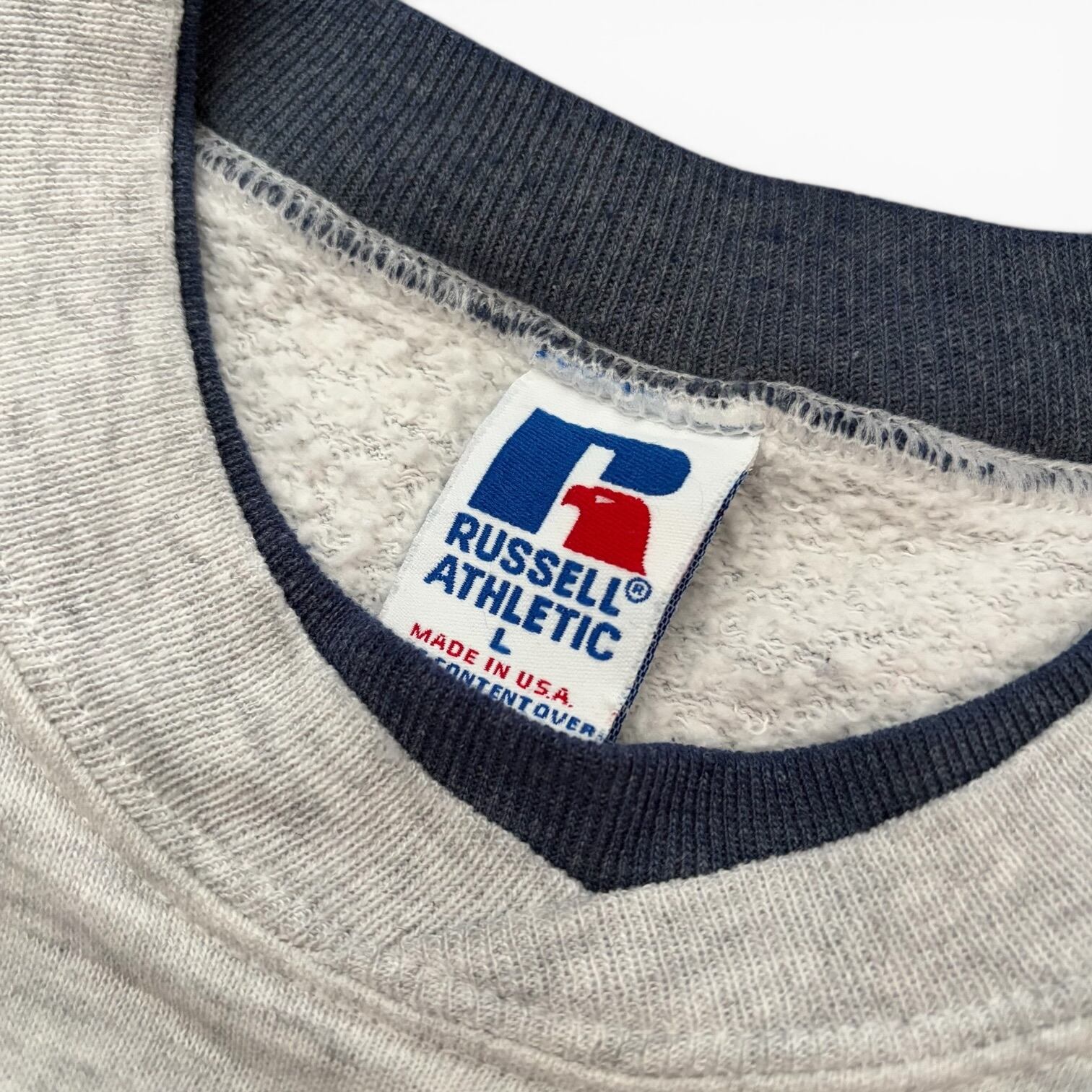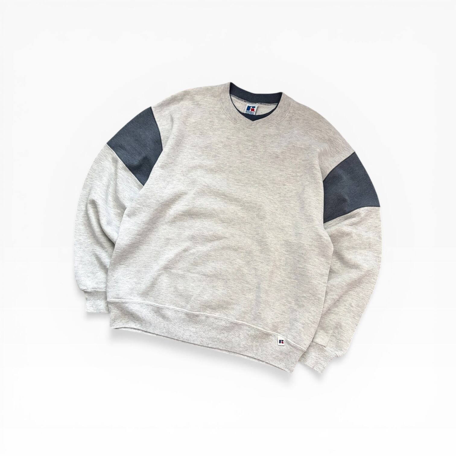 USA製 90s RussellAthletic Bicolor Blank CrewNeck Sweat GRY/CHA L