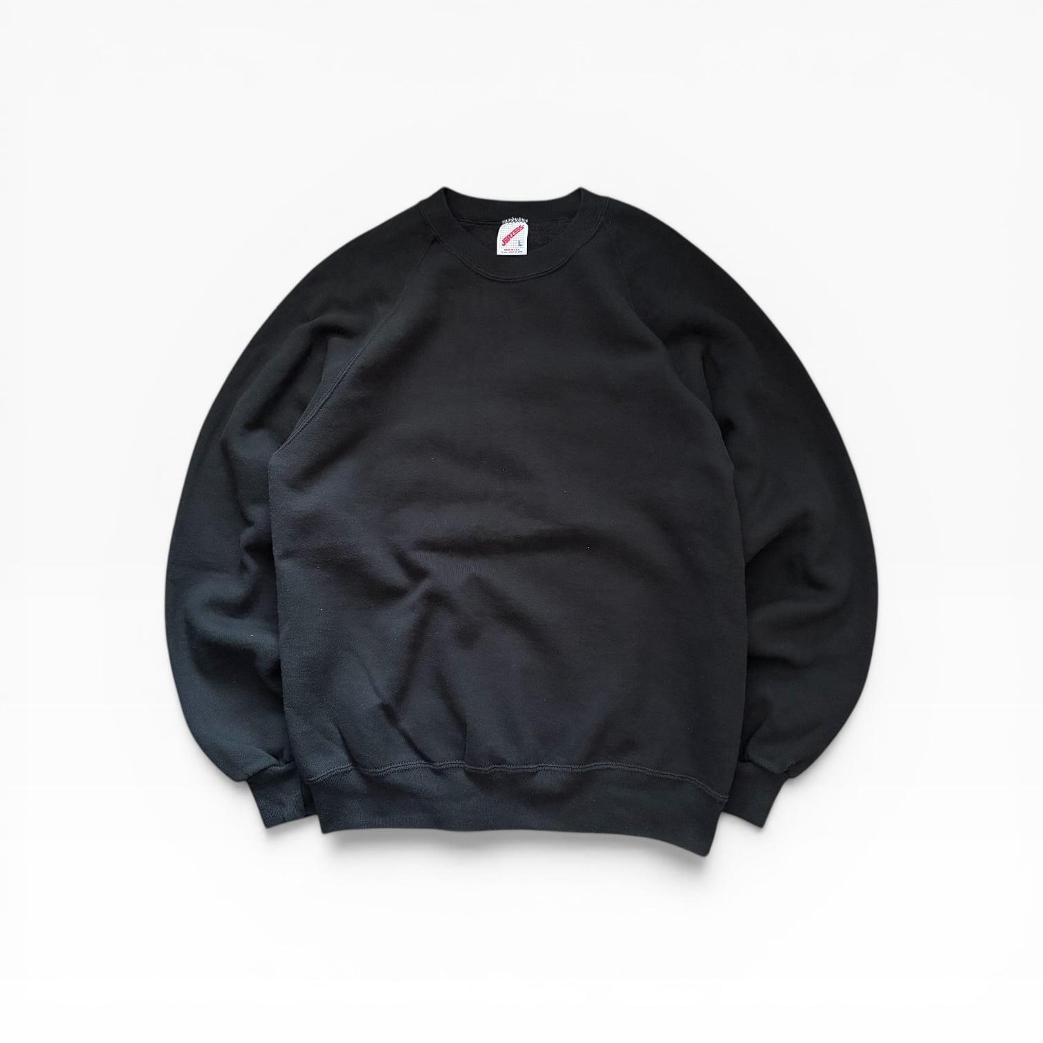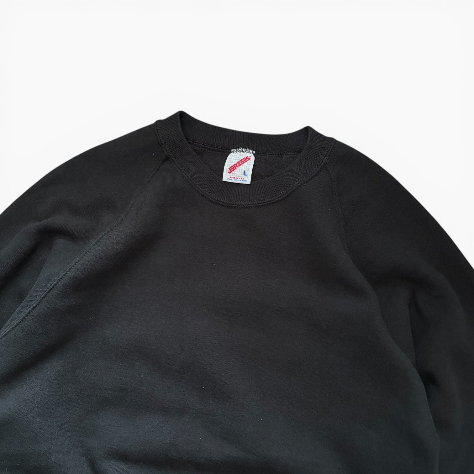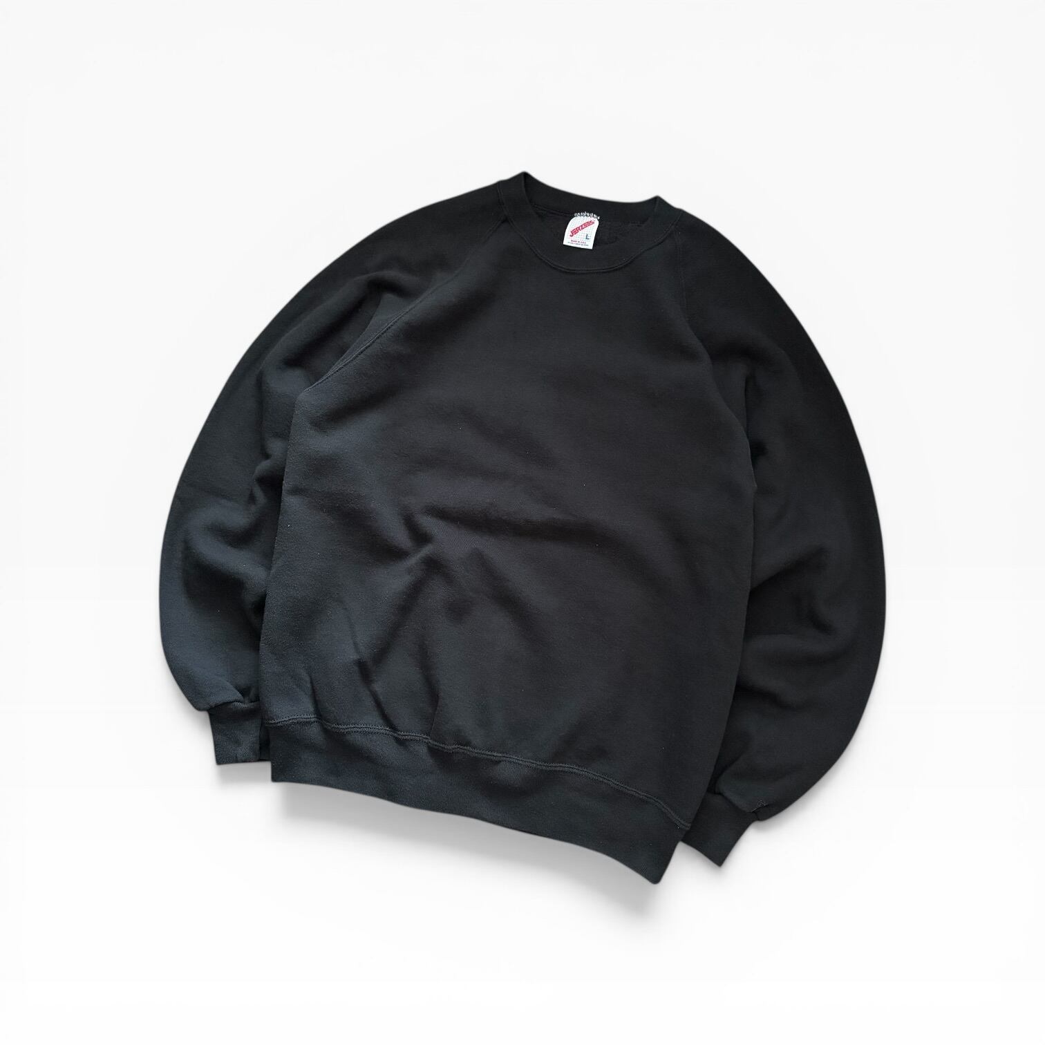 USA製 80s JERZEES Blank Raglan CrewNeck Sweat BLK L
