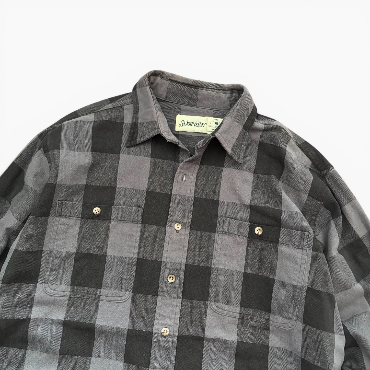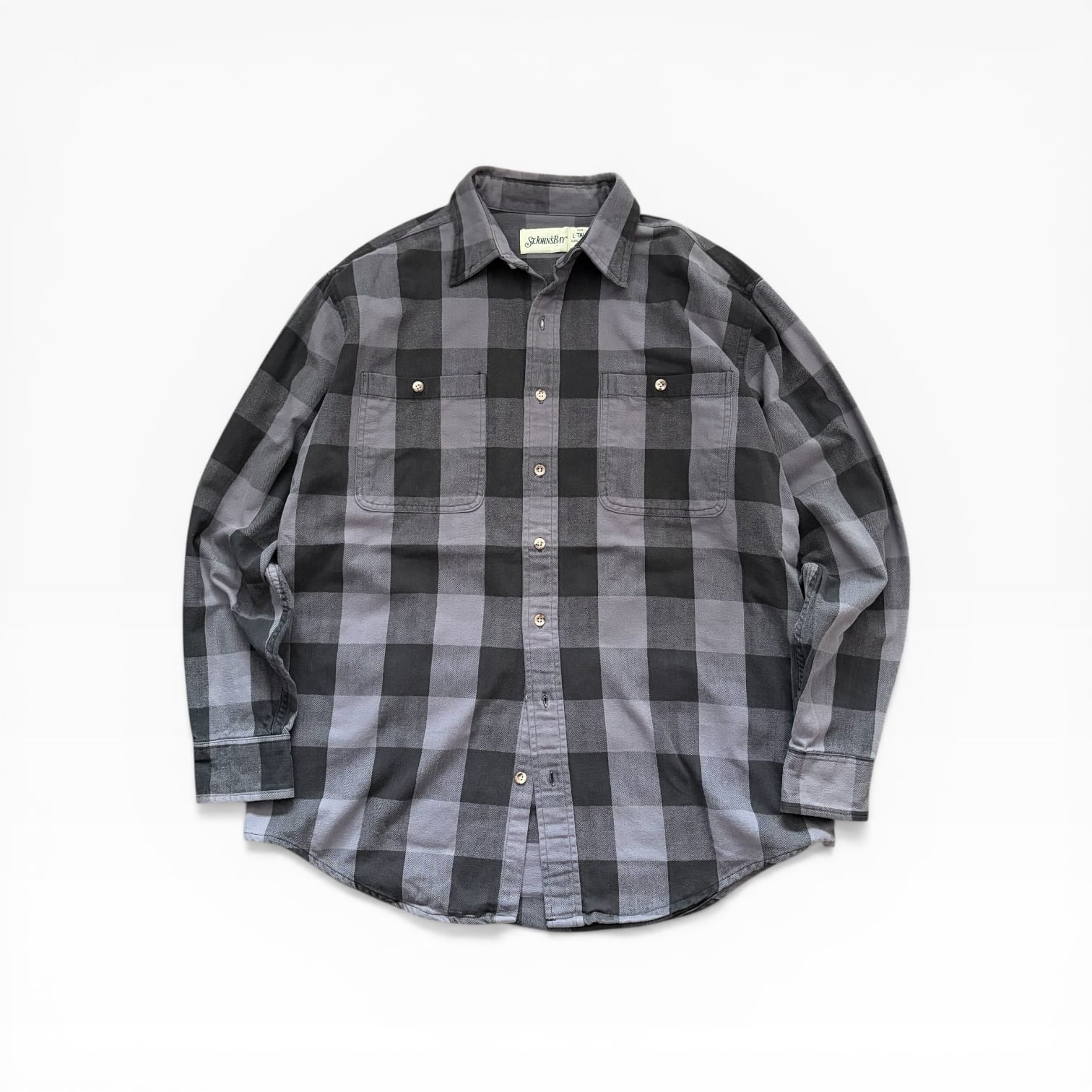 90s ST.JOHN'S BAY BrockCheck HeavyFlannel Shirt GRY/BLK L