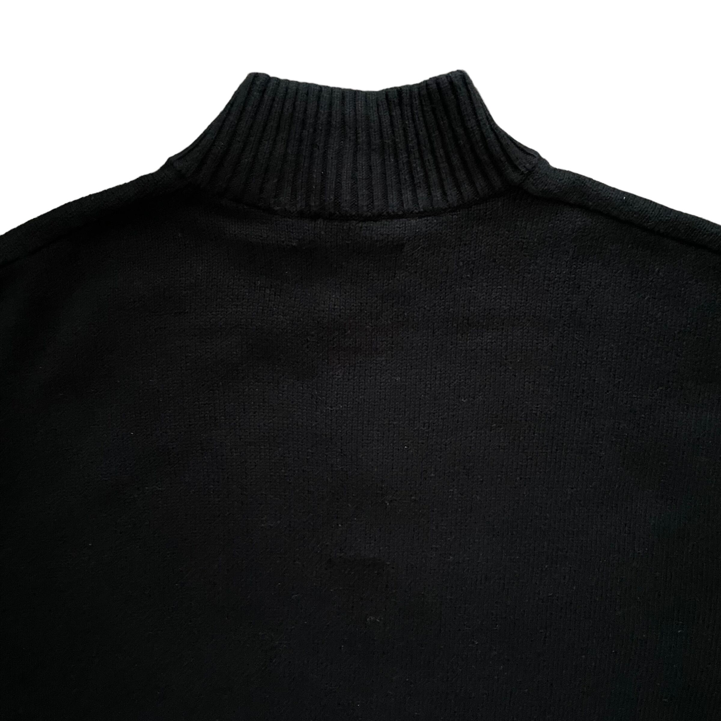 襟あるニットほどチクチクしないコットンニットがおすすめ。