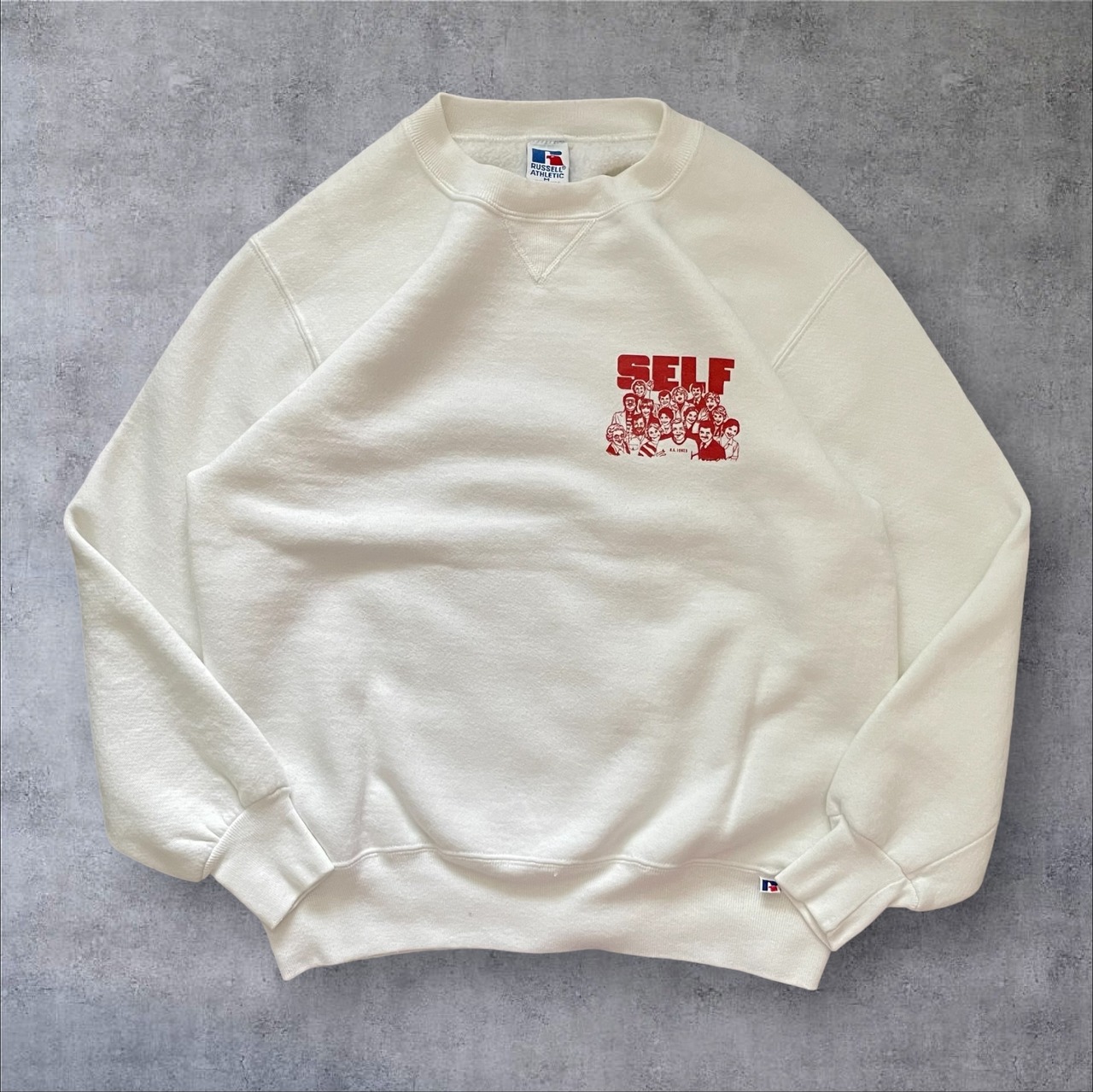 USA製 90s RussellAthletic "SELF" Print Sweat