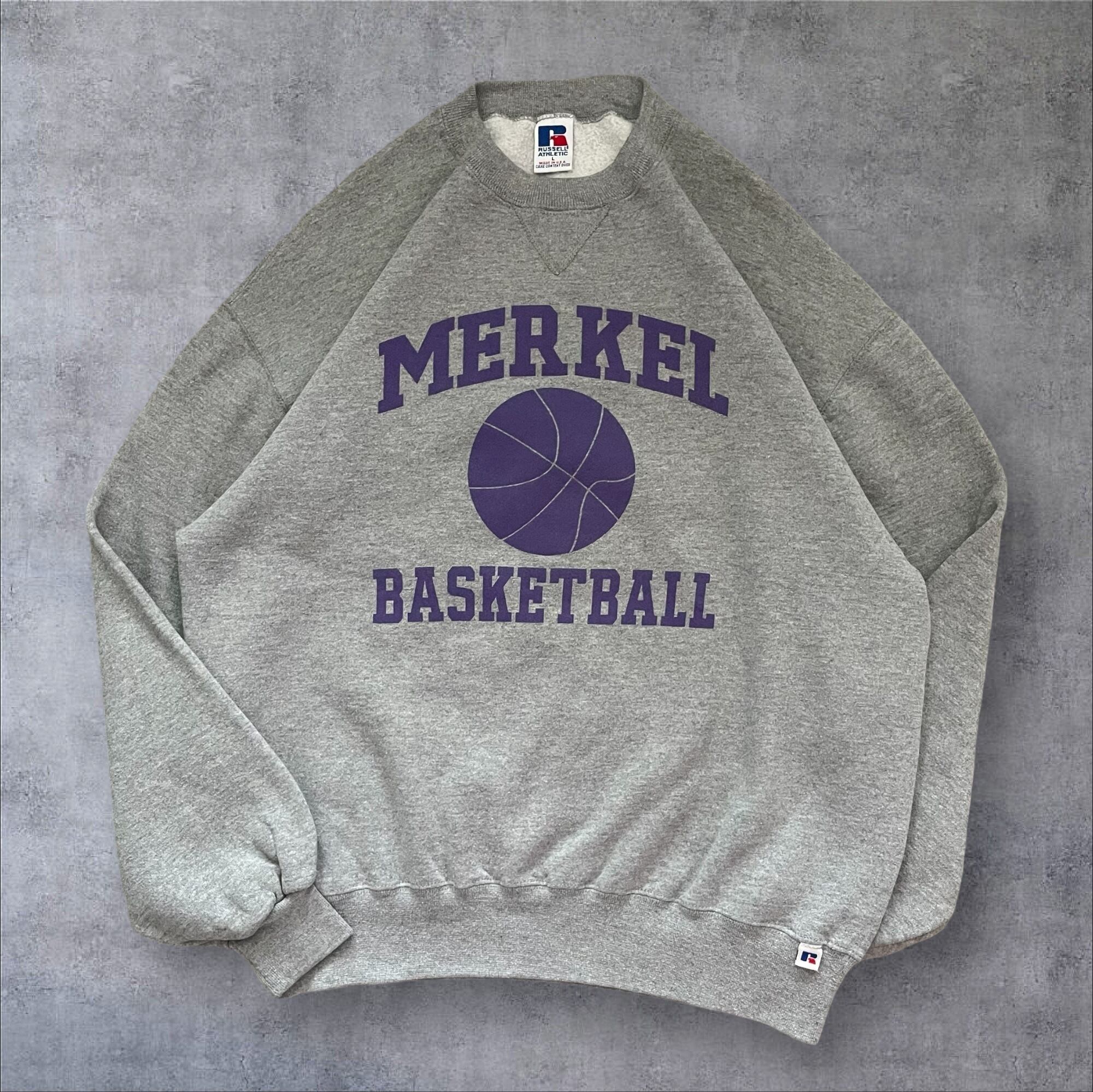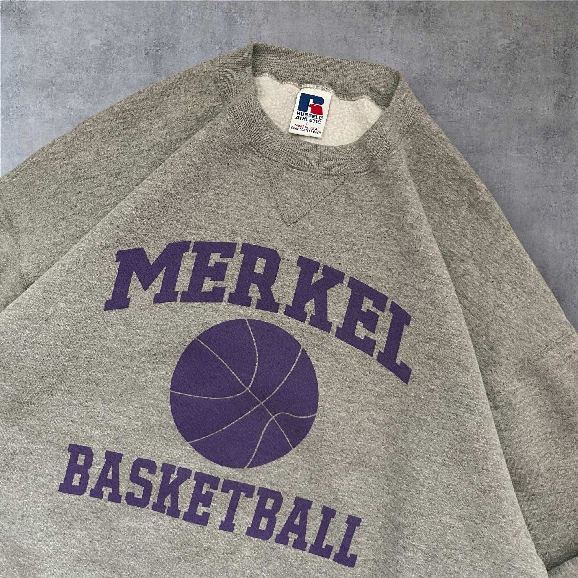 USA製 90s RussellAthletic "MERKEL BASKETBALL"Print Sweat