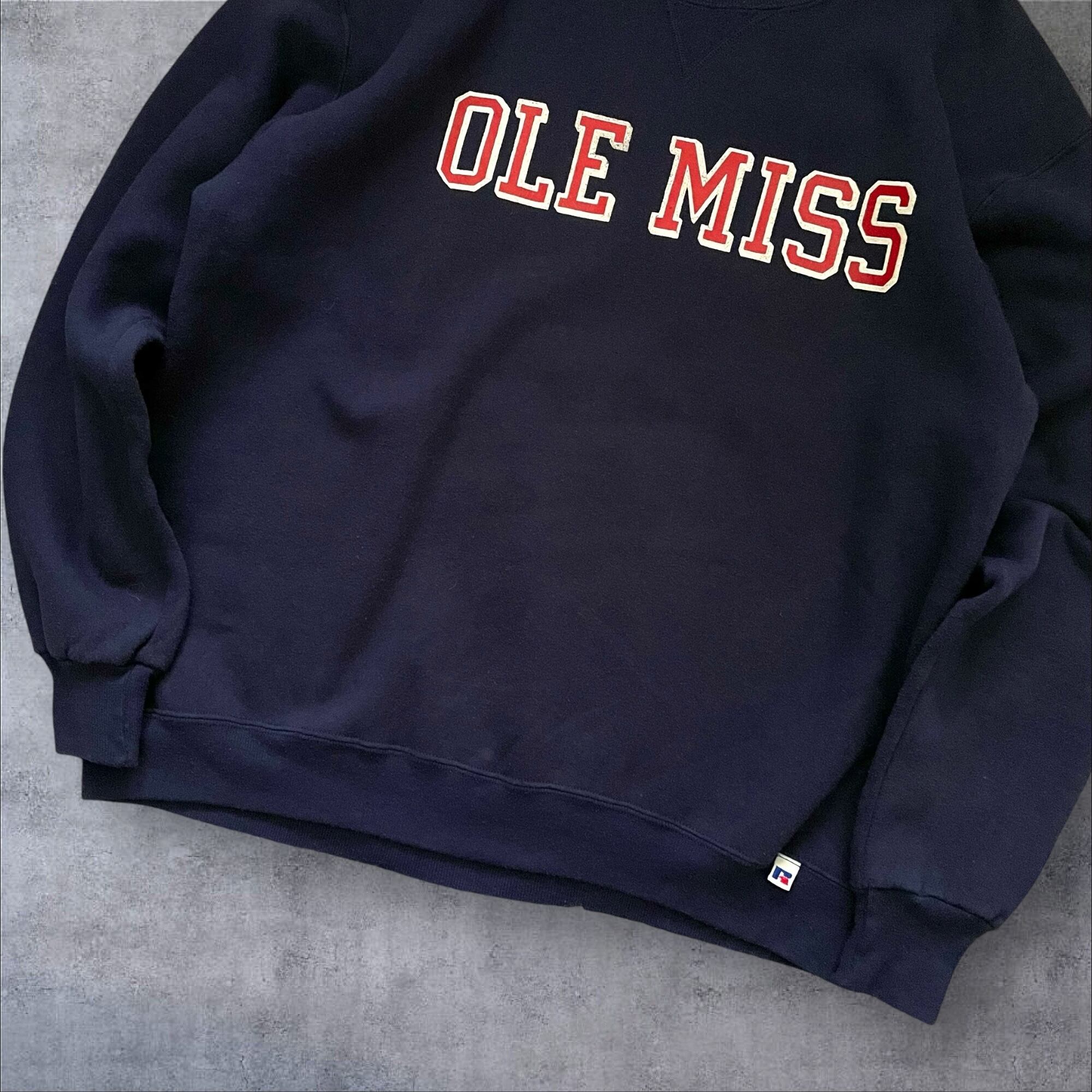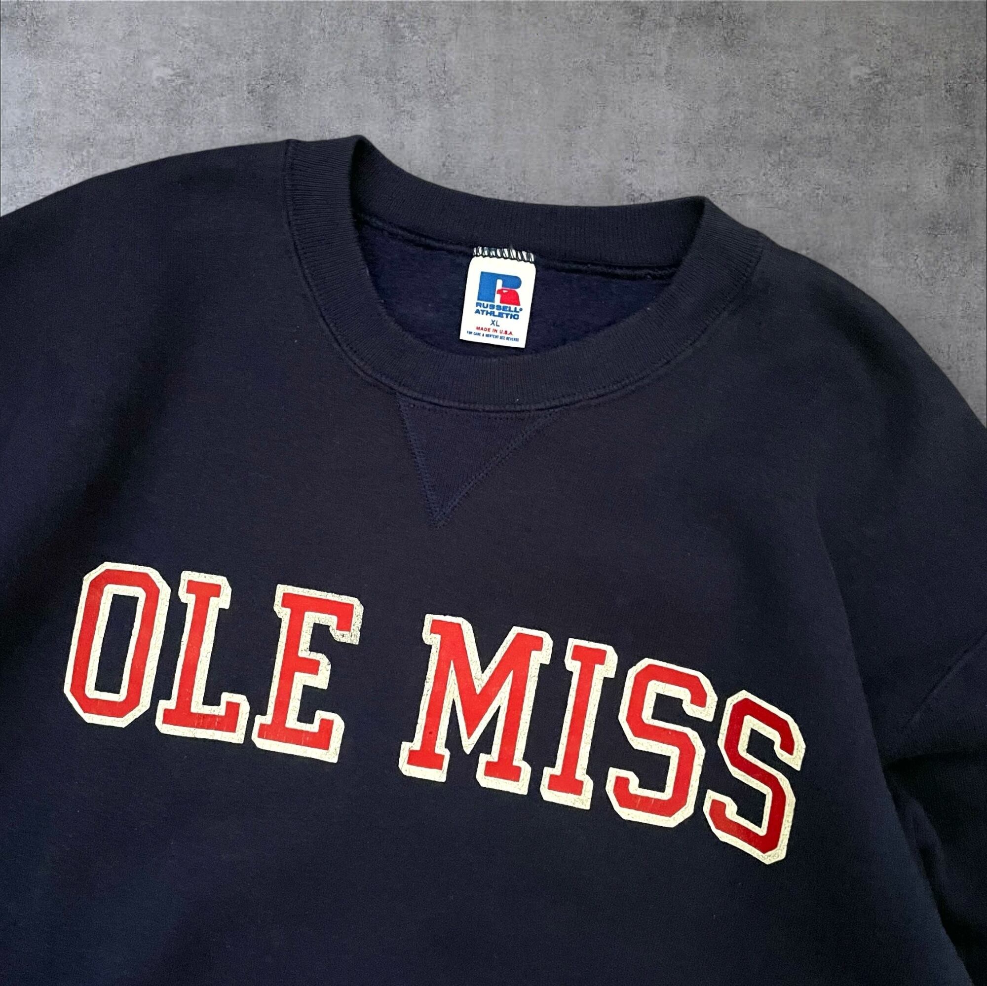 USA製 Russell Athletic "OLE MISS" Print Sweat Navy