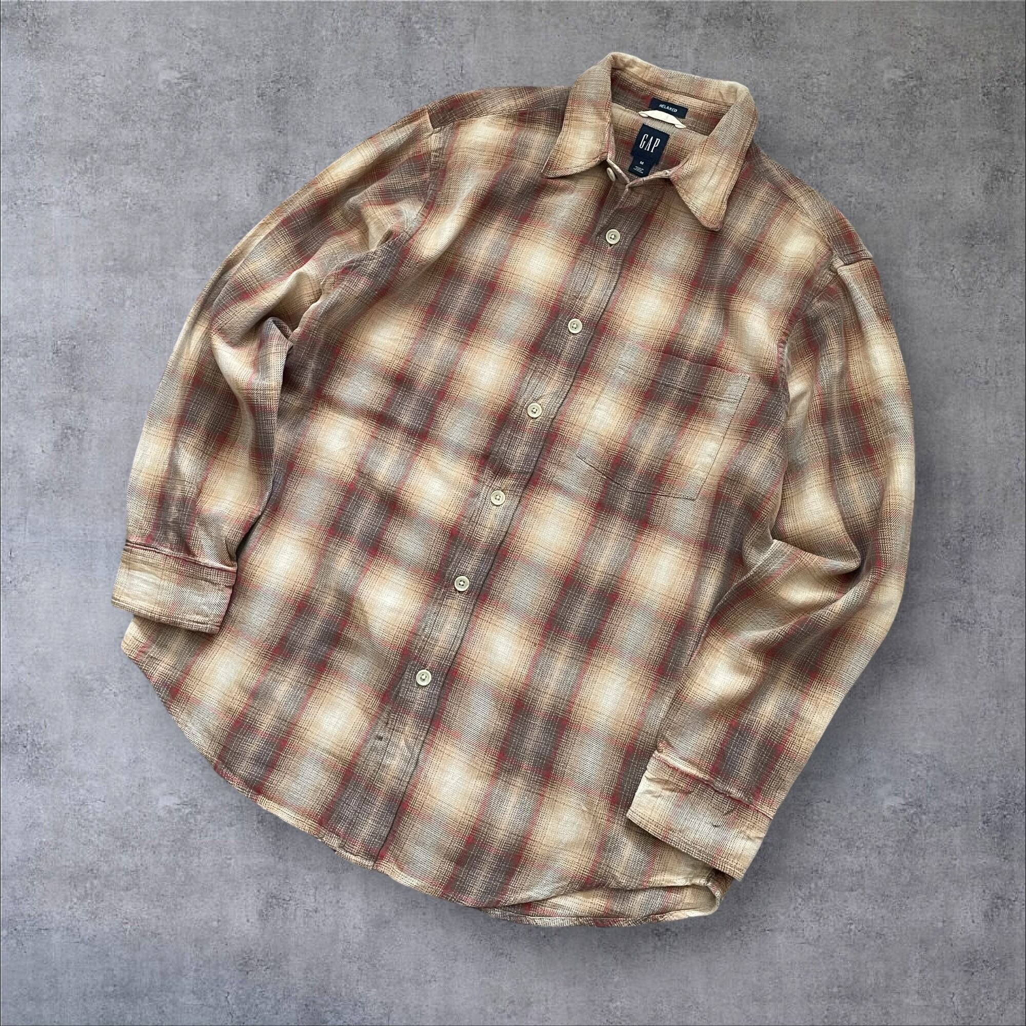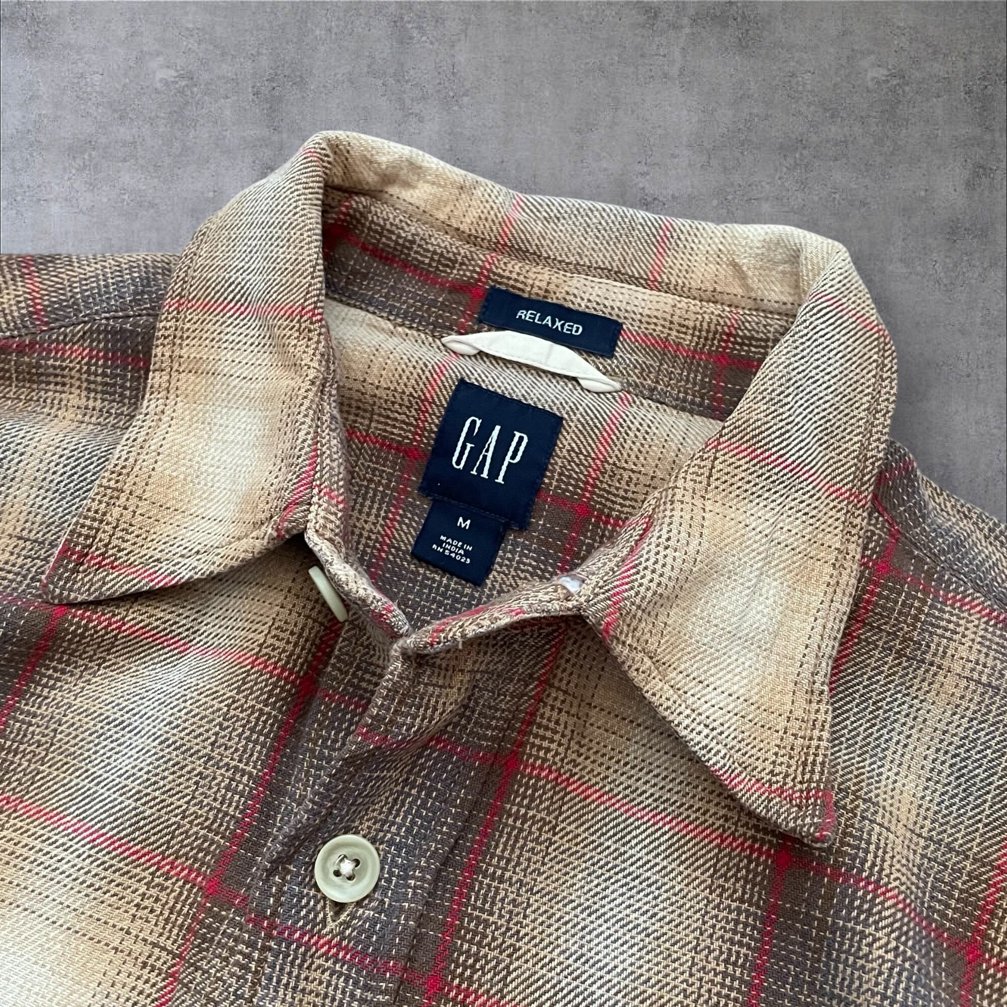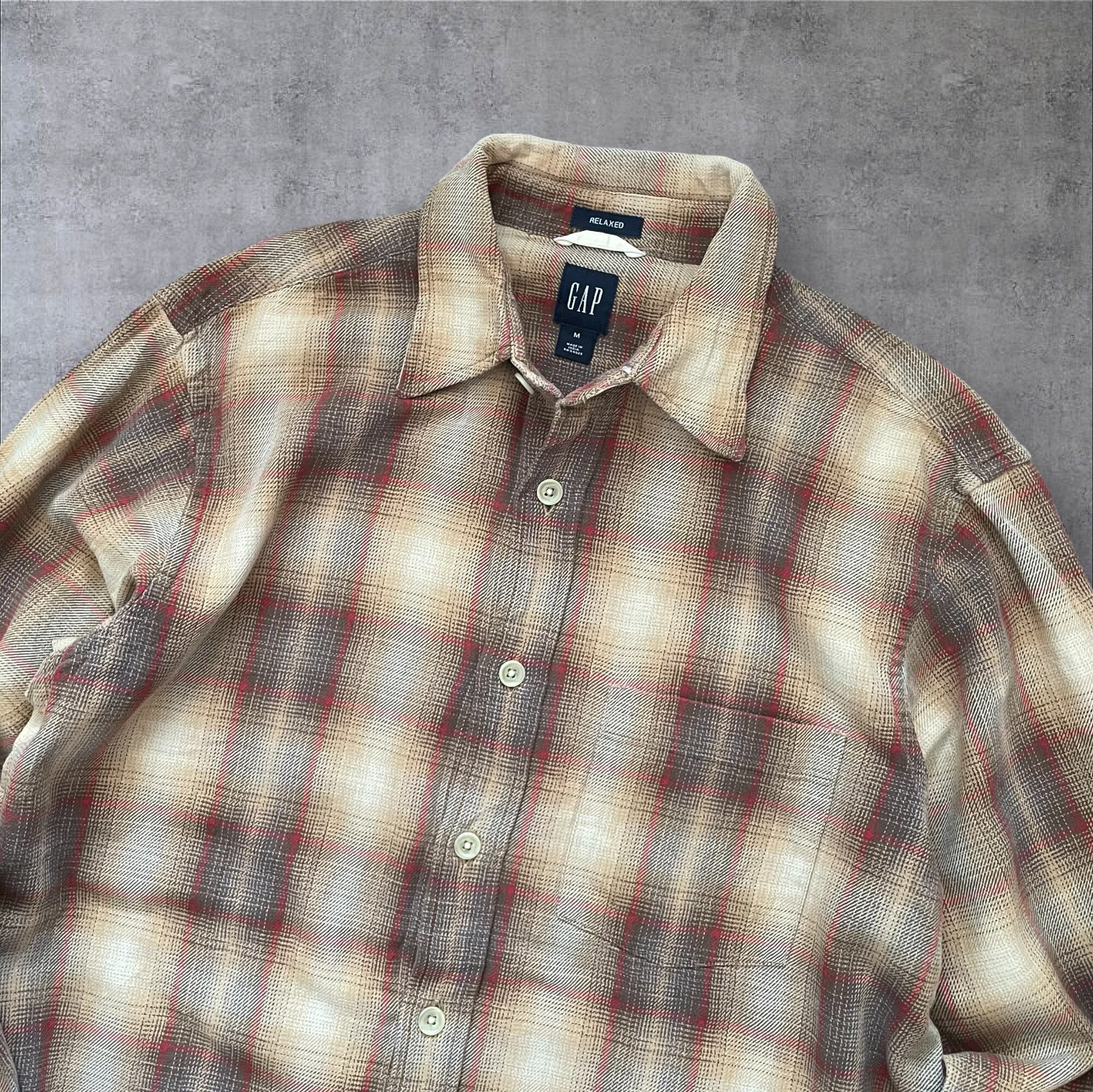 90s00s OLD GAP OmbreCheck Shirt BRW/RED M
