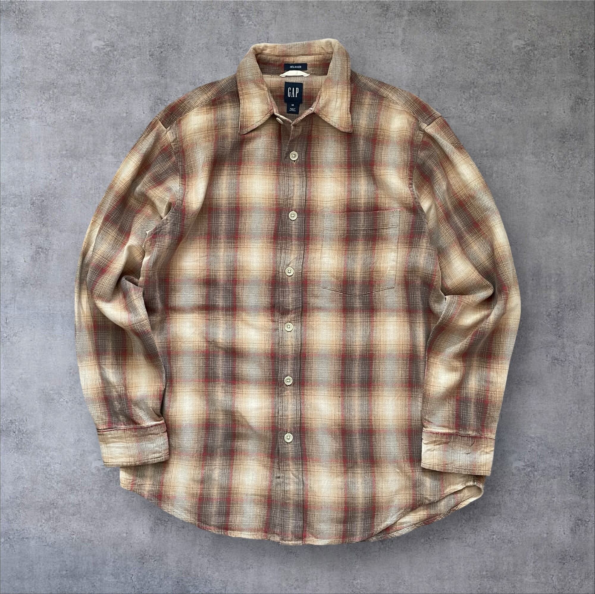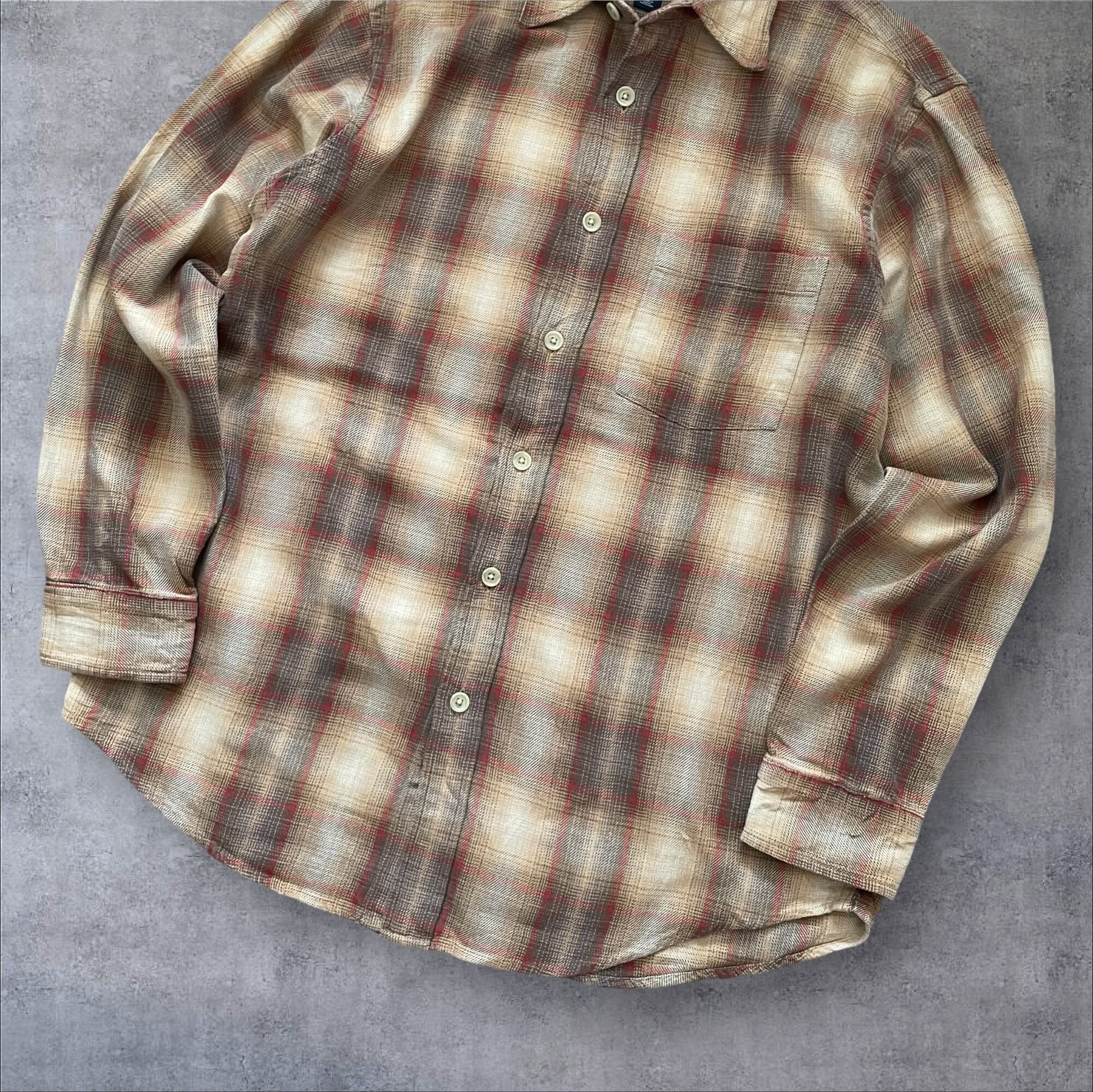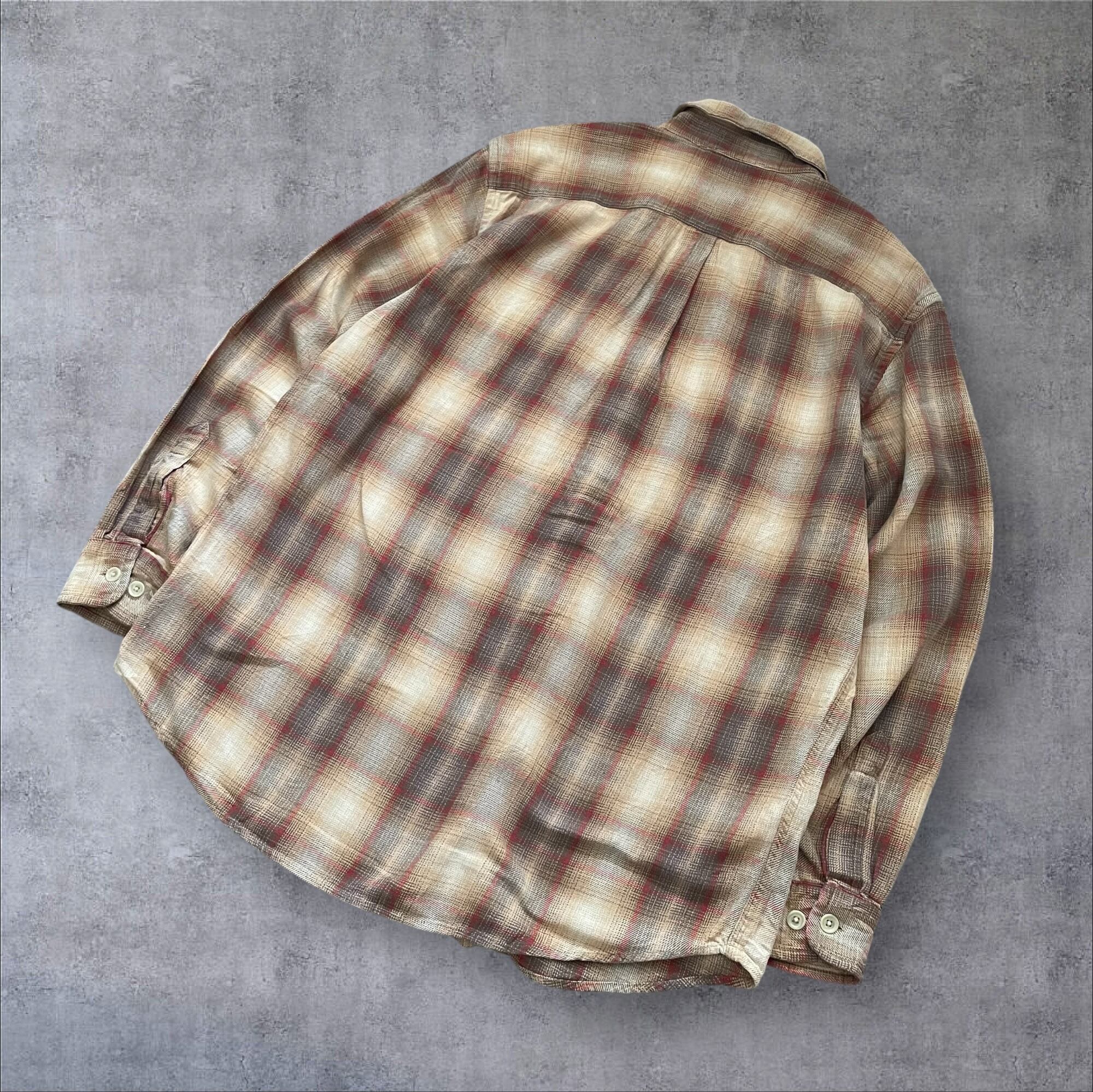 90s00s OLD GAP OmbreCheck Shirt BRW/RED M